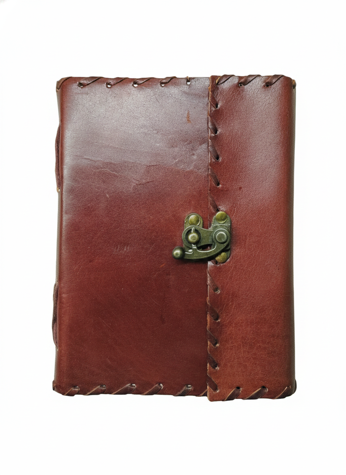 หนังทำมือพร้อมขอบเย็บและตัวล็อคโลหะ
