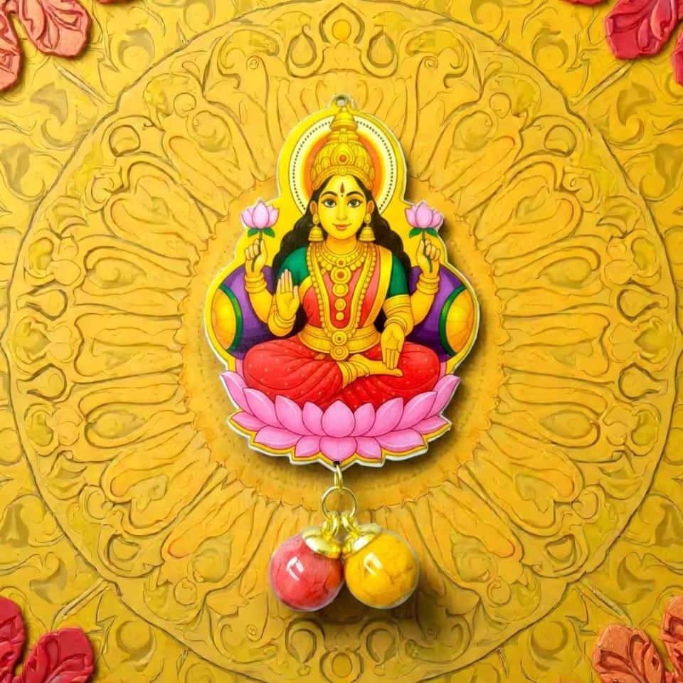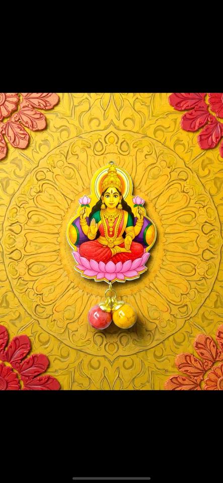 งานฝีมือประดิษฐ์เทพีคชีมี พร้อมฐานดอกบัว ประดับตกแต่งผนังสไตล์อินเดียโบราณ สีสันสดใส สำหรับเทศกาลดีวาลีและนาวรตรี