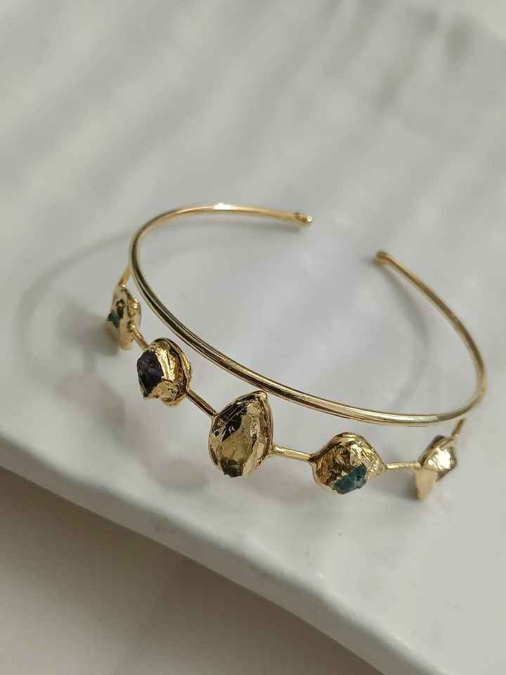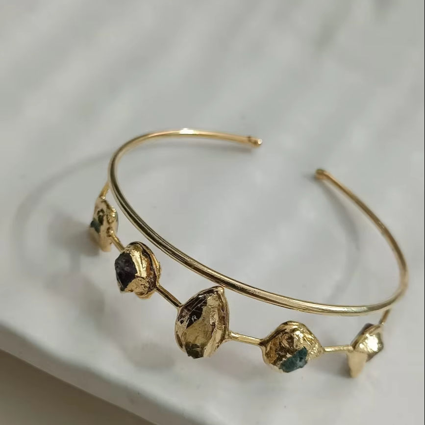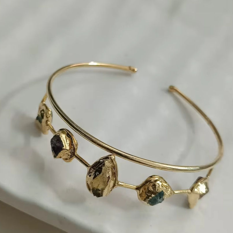 กำไลข้อมือทองเหลืองชุบทองทำมือกำไลข้อมือหินหลายชิ้นปรับแต่งได้ตามแฟชั่นที่เป็นมิตรต่อผิวเป็นผลิตภัณฑ์จำนวนมาก