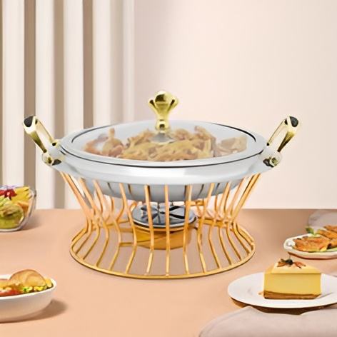 จานร้อนชุบทองทำด้วยมือทำจากสแตนเลสสตีลสำหรับงานแต่งงานอาหรับและบัฟเฟอร์ที่กำหนดเองได้พร้อมฝาค้อน