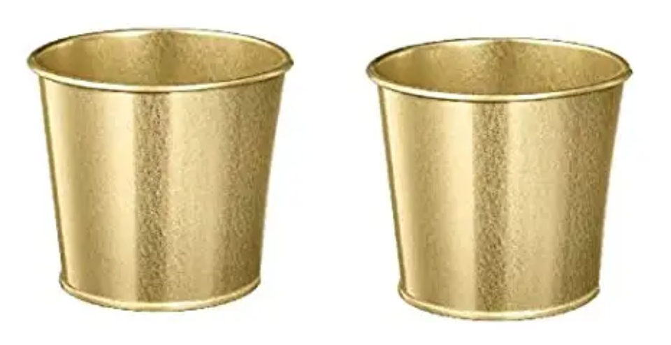ตะกร้าที่ปลูกต้นไม้โลหะมันวาวเคลือบทองทำด้วยมือออกแบบสำหรับตกแต่งบ้านและสวนดีไซน์เรียบง่ายเป็นมิตรกับสิ่งแวดล้อม