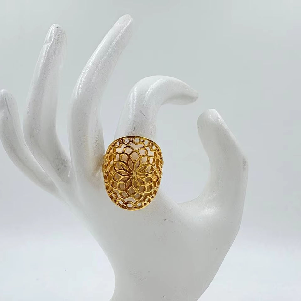 แหวนชุบทองทำมือสายโลหะทองเหลืองที่ไม่ซ้ำใครเคลือบทองด้วยมืออย่างสง่างาม