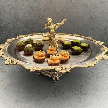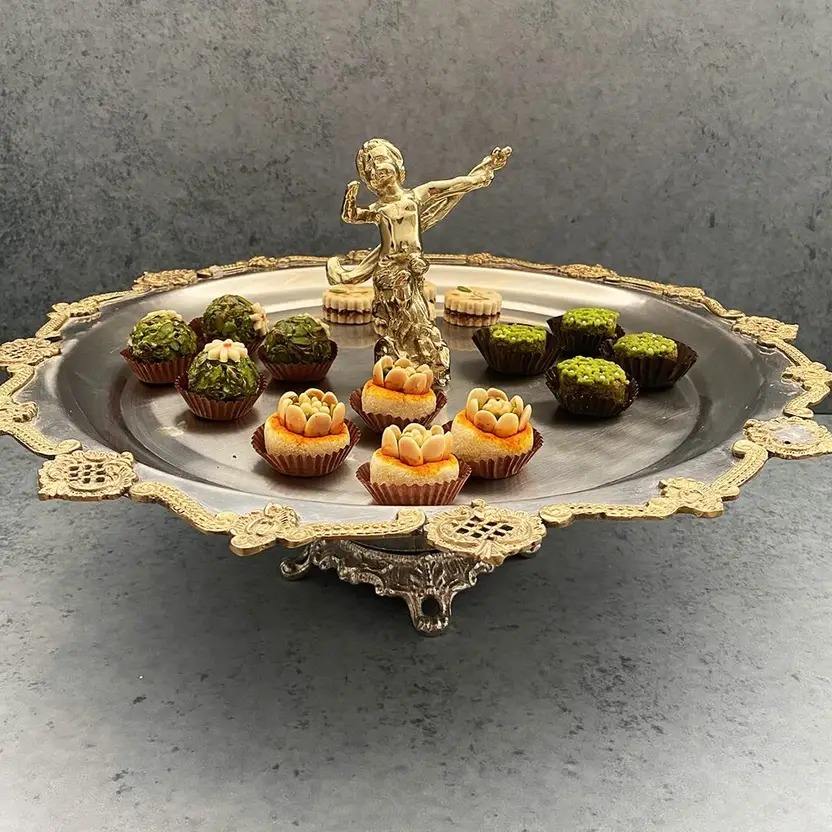 ที่วางช็อคโกแลตขัดเงาสีทองทำด้วยมือรูปทรงรีพร้อมขาตั้งช็อคโกแลตขัดเงาสีทองสำหรับเสิร์ฟช็อกโกแลตและของหวาน