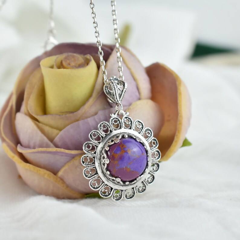 ทำด้วยมือทองโรเดียมชุบเงินสเตอลิงดอกไม้จี้สร้อยคอกรอบการตั้งค่าที่มีสีฟ้าครามโมฮาวีที่สวยงาม