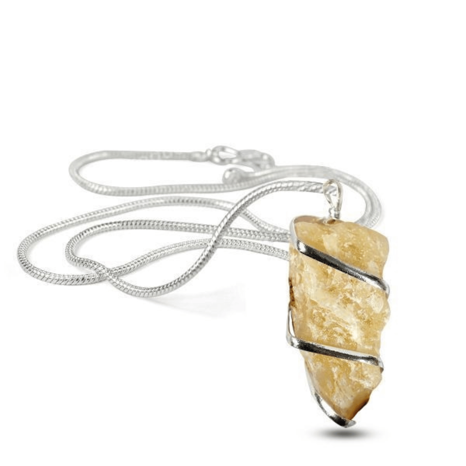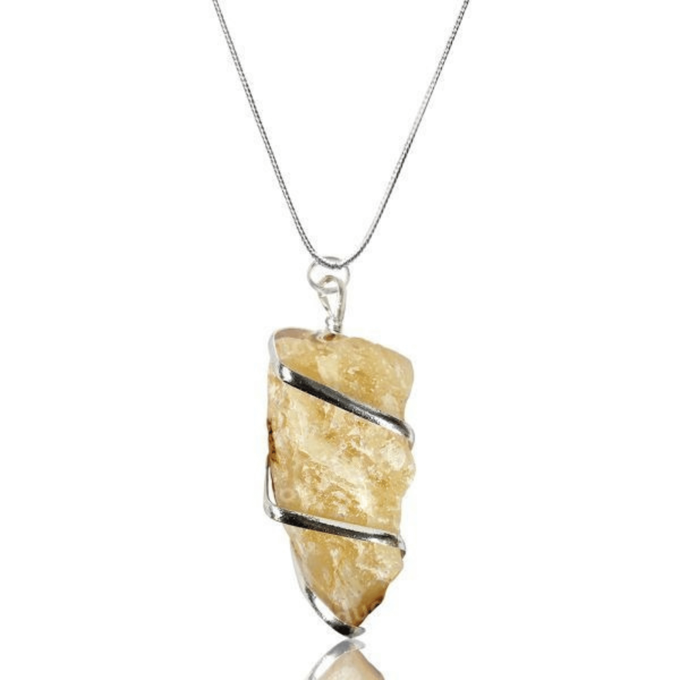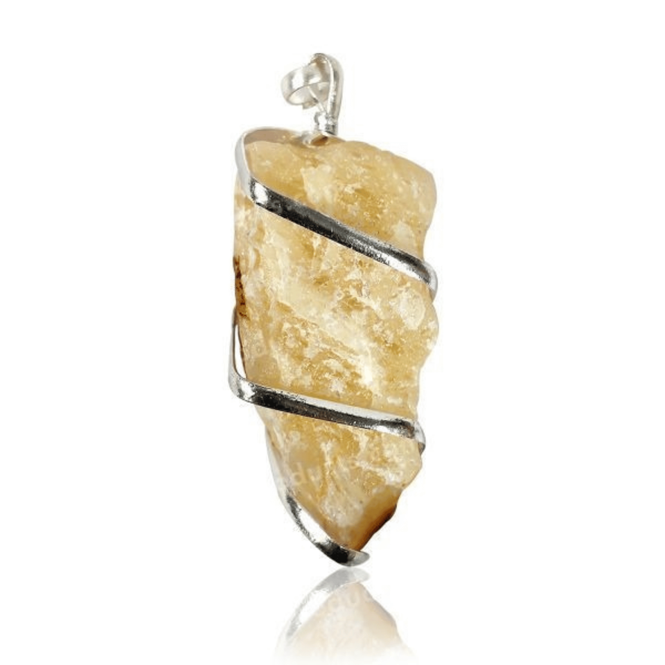 Golden Quartz Rough Stone Wire Wrapped Pendant