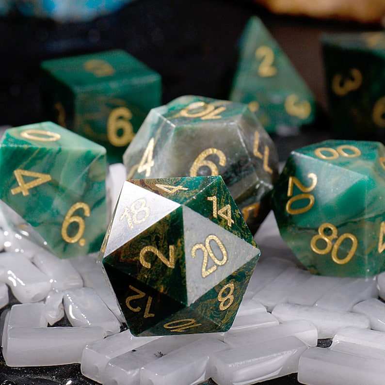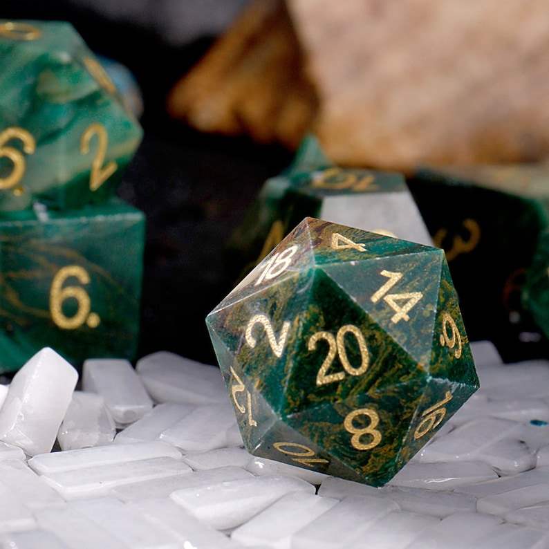 ลูกเต๋าอัญมณีสีเขียวทำมือพร้อมตัวเลขสีทอง เหมาะสำหรับเกม D&D RPG และเกมกระดาน อุปกรณ์เสริมสำหรับการเล่นเกมสุดหรูไม่เหมือนใคร