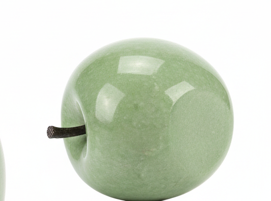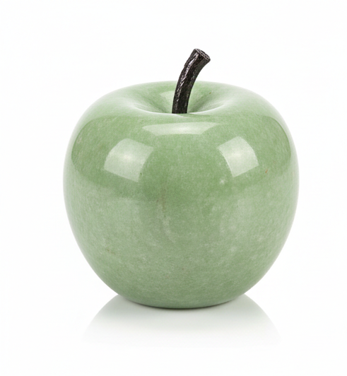 งานแกะสลักแอปเปิ้ลจากหินออนิกซ์สีเขียวทำมือ - ของตกแต่งผลไม้จากหินธรรมชาติสำหรับตกแต่งบ้านหรูหราและประดับโต๊ะทำงานอย่างมีสไตล์