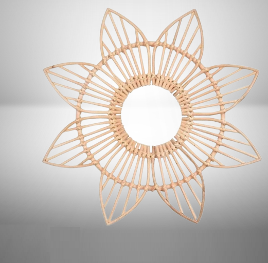 กระจกหวายสไตล์โบฮีเมียนที่ทำด้วยมือกระจกตกแต่งผนังศิลปะธรรมชาติเป็นมิตรต่อสิ่งแวดล้อมสำหรับบ้านสมัยใหม่