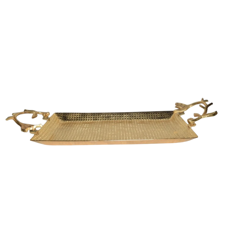 ถาดเสิร์ฟทองเหลืองโบราณทำด้วยมือพร้อมที่จับดอกไม้สำหรับตกแต่งเหมาะสำหรับการตกแต่งบ้านและเครื่องครัว