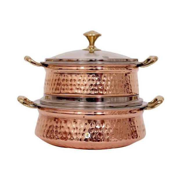 กระติกน้ำร้อน/น้ำมันเชื้อเพลิงแบบสองชั้นผนังทองแดงตีขึ้นรูปด้วยมือ พร้อมฝาปิด สำหรับเสิร์ฟบุฟเฟ่ต์ เป็นมิตรกับสิ่งแวดล้อม