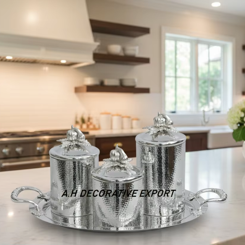 ชุดกล่องเก็บอาหารสแตนเลสสตีลสีเงินลายตอกแบบแฮนด์เมด พร้อมถาดตกแต่ง สไตล์ยุโรป เป็นมิตรกับสิ่งแวดล้อม