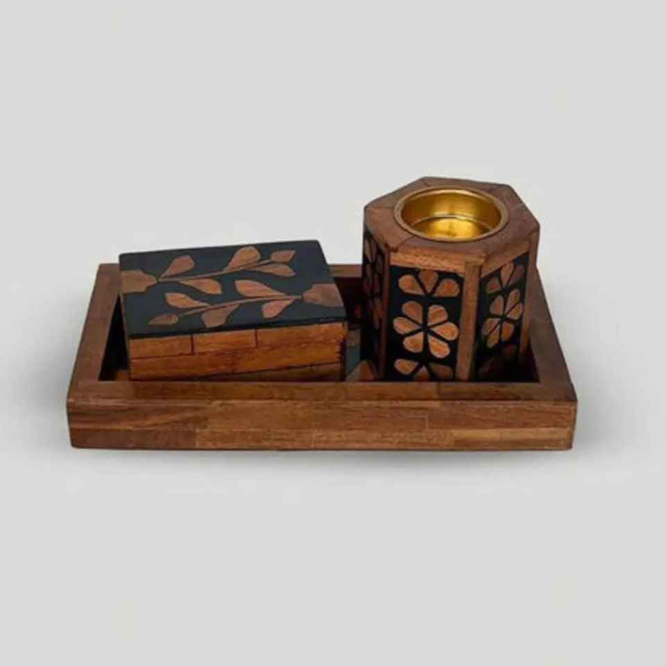 Handcrafted Hexagonal Shaped Wood Resin Tray Box Set Incense Burner Arabic Madkhan Home Ramadan Eid Special Trendy Mubkhar