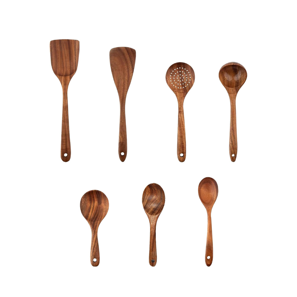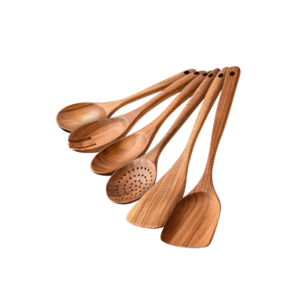 ชุดช้อนไม้ธรรมชาติทำด้วยมือของใช้ในครัวจากเวียดนามสำหรับทำอาหาร