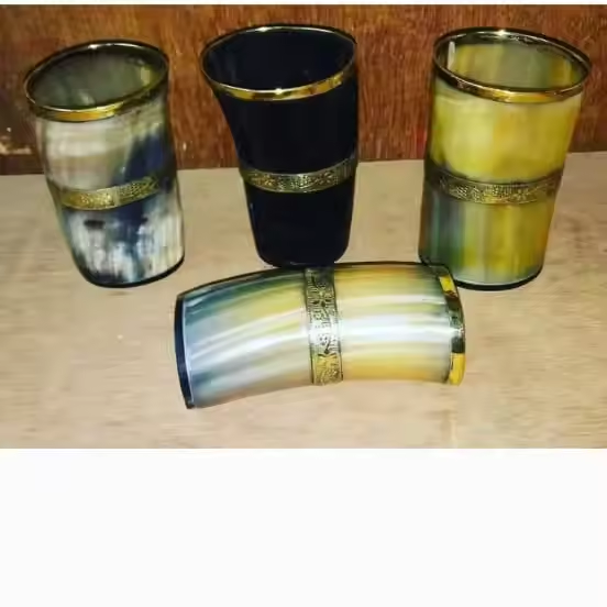 ถ้วยฮอร์นทำมืออุปกรณ์บาร์แบบดั้งเดิมที่ไม่ซ้ำกันสำหรับเครื่องดื่มงานฝีมือตามธรรมชาติโดยงานฝีมือเสี้ยว