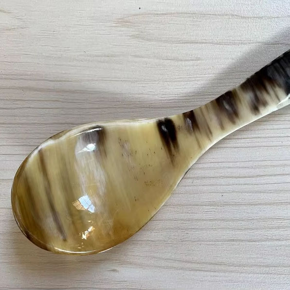 คอลเลกชั่นช้อนฮอร์นที่ทำด้วยมือชุดช้อนส้อมแบบใช้แล้วทิ้งมีสไตล์สำหรับการตั้งค่าโต๊ะที่มีควายและวัว