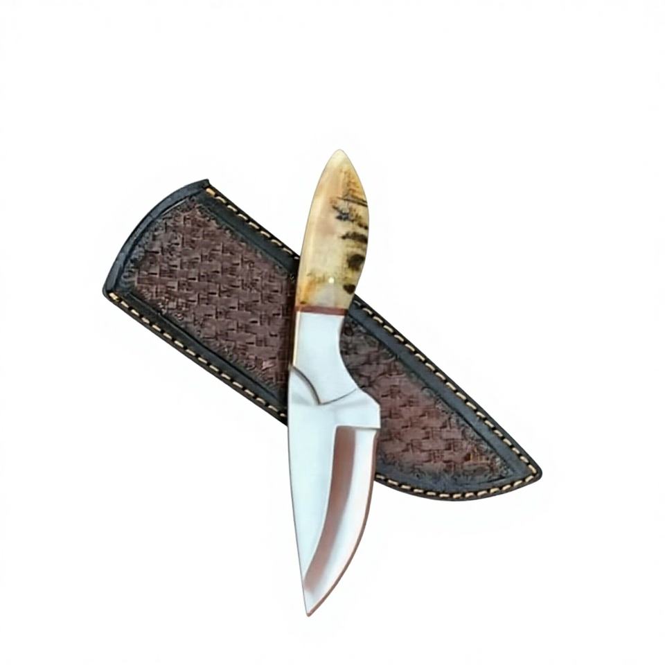 มีดพกพาทำมือสำหรับตั้งแคมป์ ใบมีดเหล็กดามัสกัส ด้ามไม้ ใช้สำหรับล่าสัตว์ พร้อมปลอกหนัง
