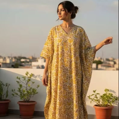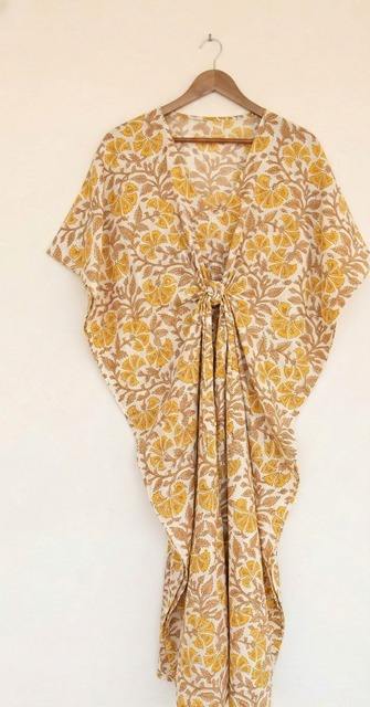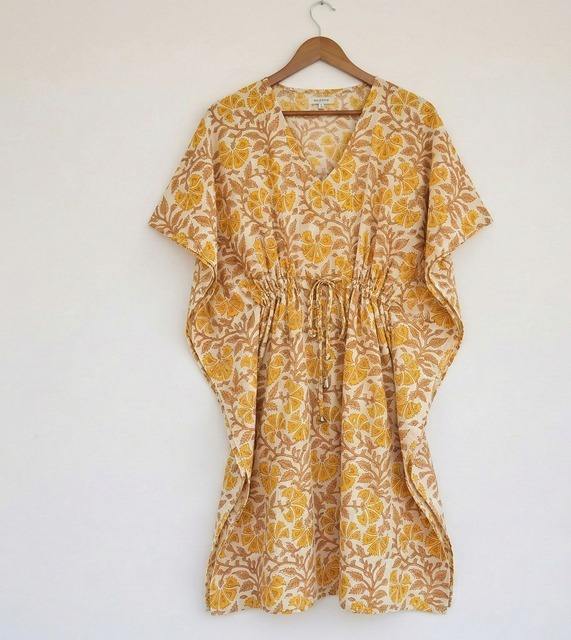 ชุดคลุมชายหาดผ้าฝ้ายอินเดียทำมือ พิมพ์ลายบล็อกด้วยมือ สไตล์โบโฮ สำหรับผู้หญิง ใส่ได้ในฤดูร้อน