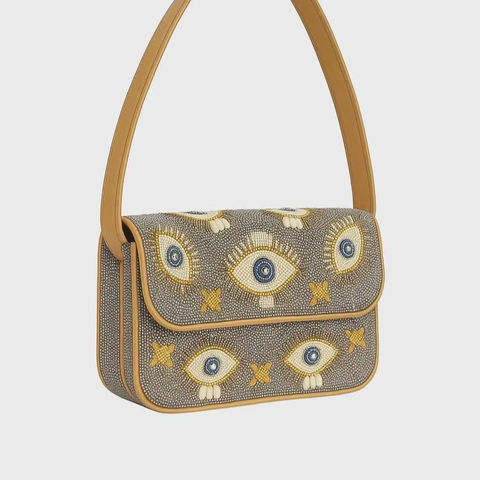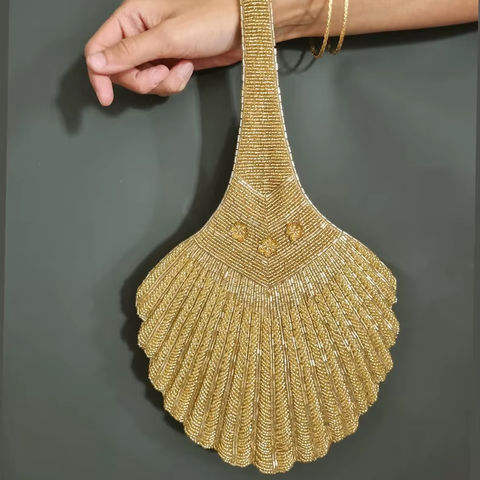 กระเป๋าถือทำมือสไตล์อินเดียสุดหรูสำหรับใช้ในชีวิตประจำวัน ประดับด้วยลูกปัดแก้วหลากสีสัน พร้อมหูหิ้วทรงบาแกตต์ ทนทาน ตกแต่งด้วยคริสตัล