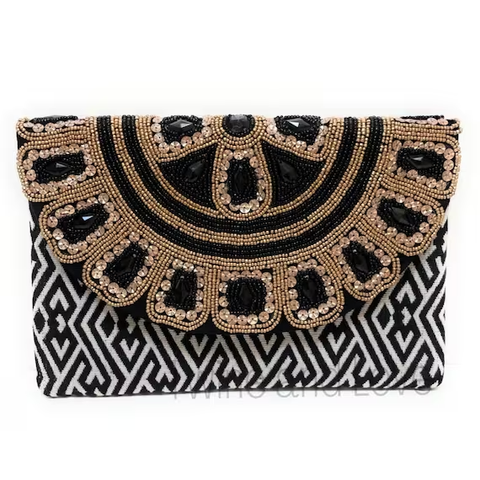 กระเป๋าถือลูกปัดทำมือสไตล์อินเดียสุดหรูสำหรับใช้ในชีวิตประจำวัน พร้อมหูหิ้วทรงบาแก็ตหลากสีสัน ทนทาน ดีไซน์แบบดั้งเดิม