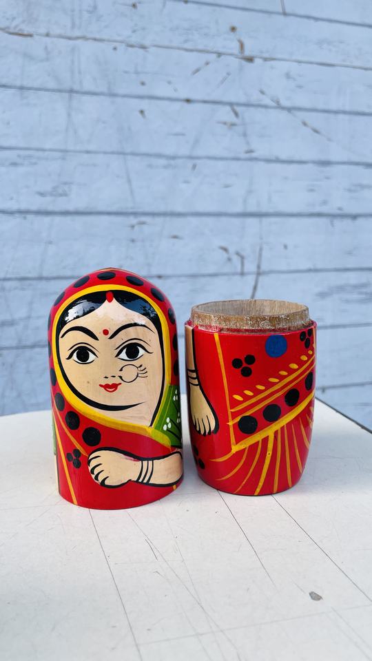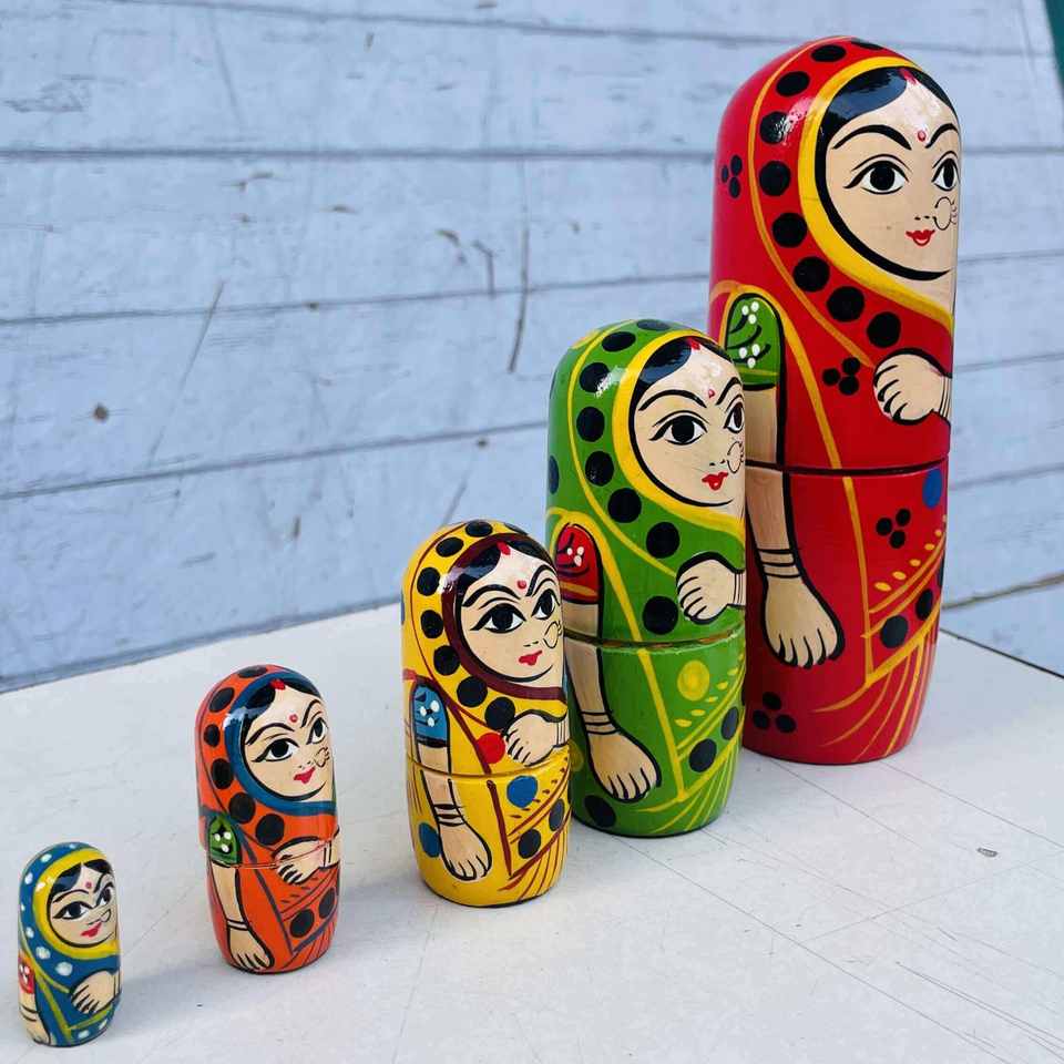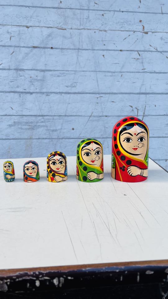 ชื่อผลิตภัณฑ์:ชุดตุ๊กตาทำรังทำจากไม้อินเดียทำมือ (5ชิ้น)