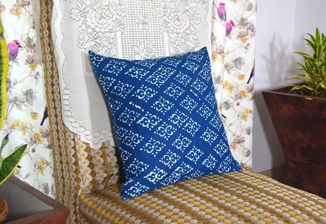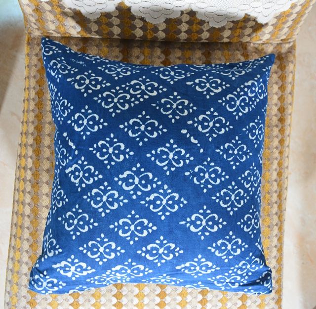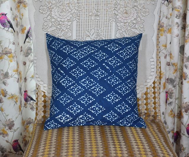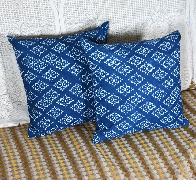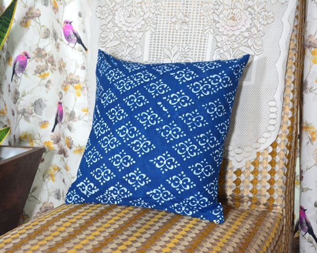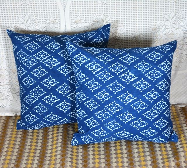 ปลอกหมอนอิงพิมพ์ลายบล็อกอินดิโก้ทำมือ ผ้าฝ้ายพรีเมียม