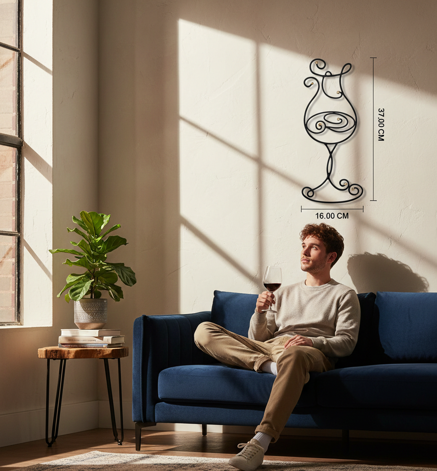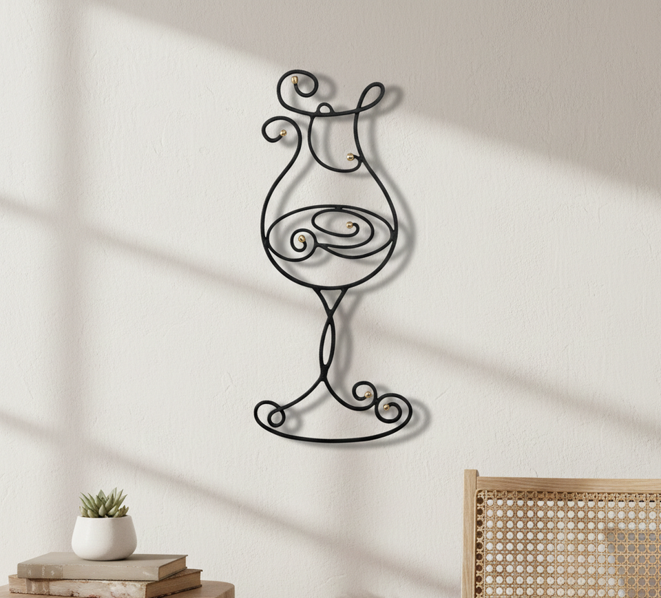 แก้วไวน์เหล็กตกแต่งผนังแบบแฮนด์เมดสไตล์อาร์ตเดโค พร้อมการเคลือบผิวด้วยสีดำแบบพ่นเคลือบอย่างทันสมัย