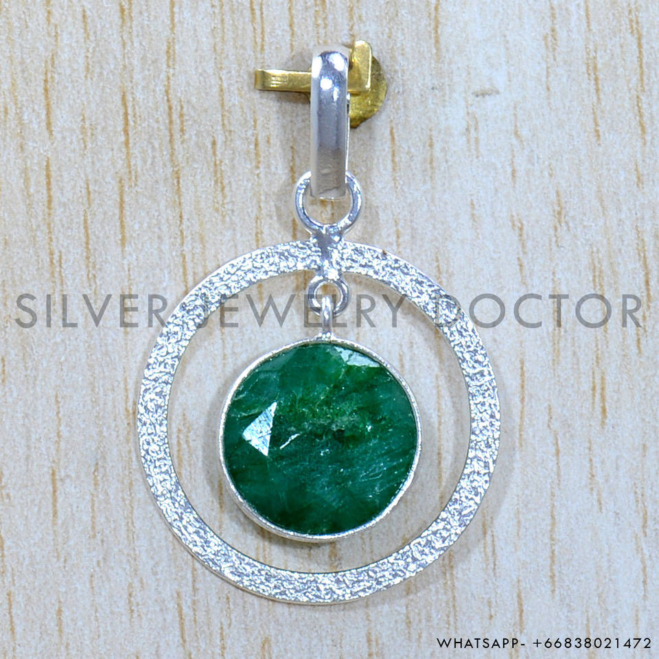 เครื่องประดับทำด้วยมือพลอยมรกต925จี้เงินแท้
