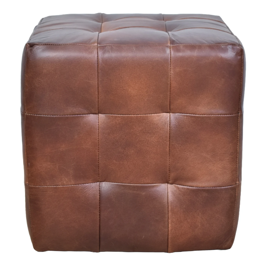 เก้าอี้หนังออตโตมันทำด้วยมือพร้อมเบาะหนากรอบไม้เนื้อแข็งที่นั่งหรูหราสำหรับตกแต่งห้องนั่งเล่นโรงแรม
