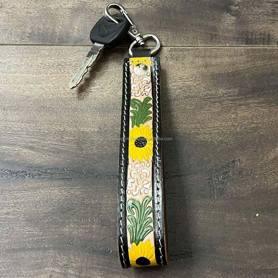 Product Name:Hand Tooled Cowhide Leather Wristlet Keychain