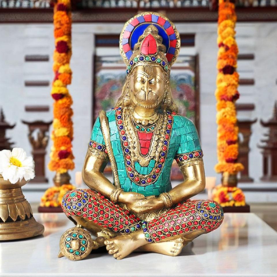 Product Name:Lord Hanuman ji in Dhyan Mudra with Mosaic Work