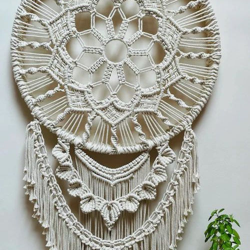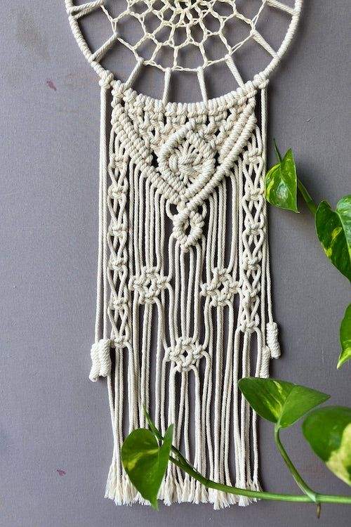 เครื่องดักฝันดอกบัวทำมือเครื่องจับฝันที่สวยงาม macrame Boho เครื่องจับฝันทำจากผ้าฝ้ายทำด้วยมือสำหรับตกแต่งบ้าน