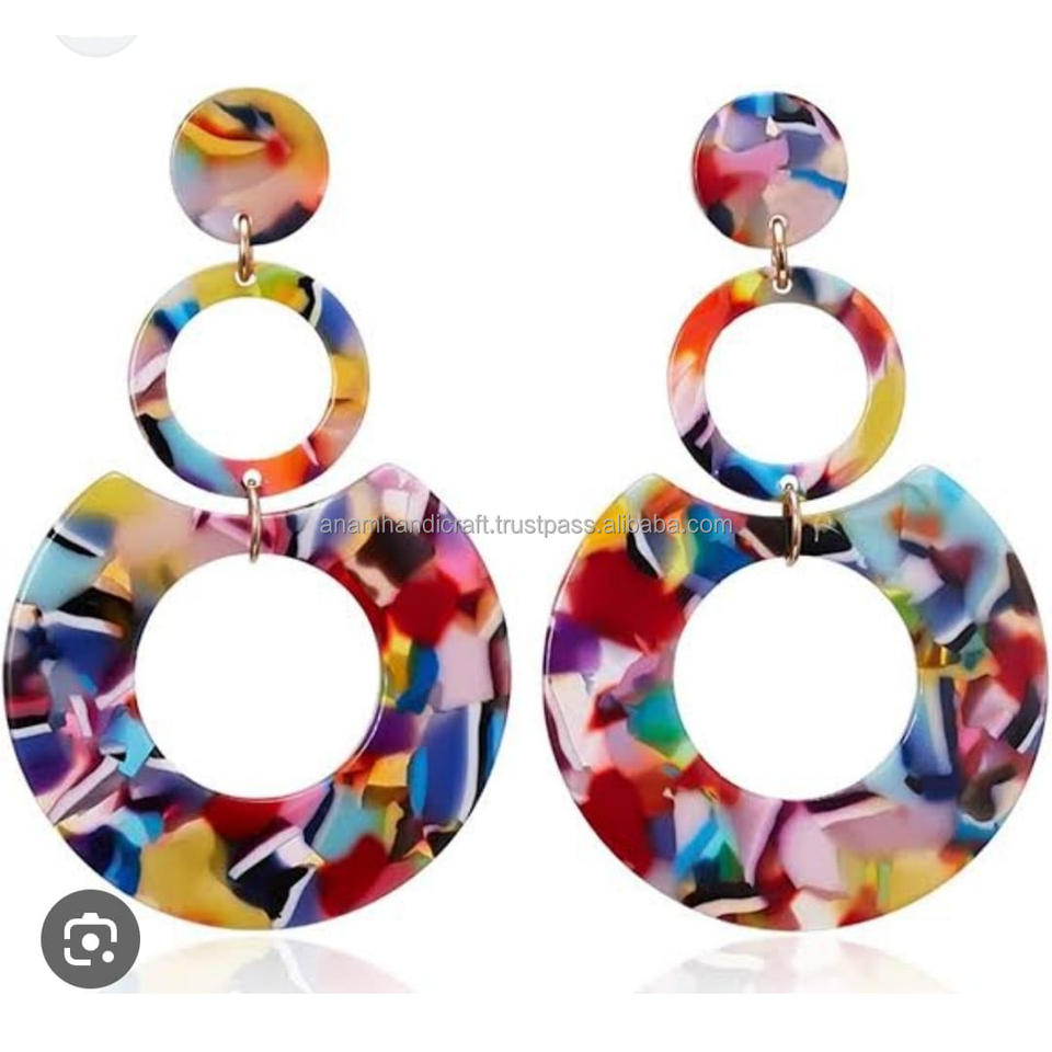 ต่างหูเรซิ่นสีแบบกำหนดเองที่หรูหราทำด้วยมือสำหรับผู้หญิงเครื่องประดับแฟชั่นขัดเงาคุณภาพสูงจากอินเดีย
