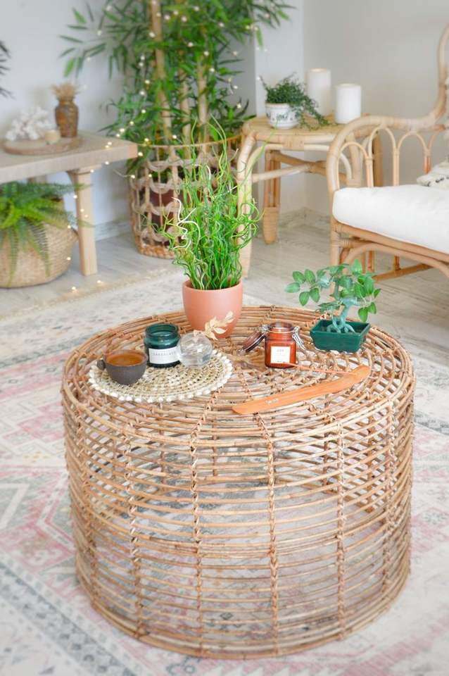 โต๊ะหวายสำหรับห้องนั่งเล่นดีไซน์หรูหราทำมือตกแต่งโต๊ะข้างแบบมีเอกลักษณ์