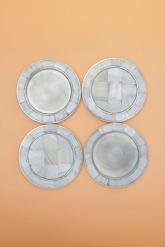 ที่รองแก้วแบบฝังมุกแม่สุดหรูทำด้วยมือทรงกลม/สี่เหลี่ยม (ปรับแต่งได้) ทนทานนำกลับมาใช้ใหม่ได้