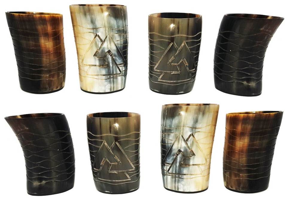ฮอร์นแก้วสำหรับดื่มทำมือสีธรรมชาติหรูหรางานแกะสลักทำด้วยมือแก้วไวกิ้งติดโลโก้แบบสั้นแก้ว