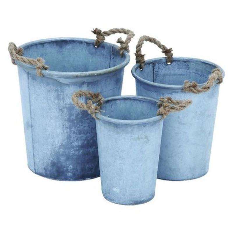 กระถางชุบสังกะสีทำมือสไตล์หรูหราสำหรับตกแต่งบ้านสมัยใหม่พร้อมที่จับเชือกและขนาดแตกต่างกัน