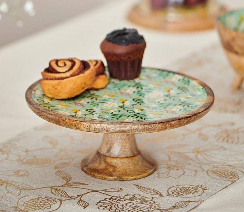 ที่ตั้งเค้กไม้มะม่วงทำด้วยมือพร้อมเคลือบด้านบนดีไซน์ดอกไม้หรูหราฐานแท่นทนทานเหมาะสำหรับจัดแสดงขนมหวาน