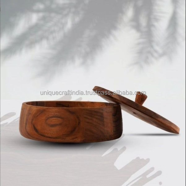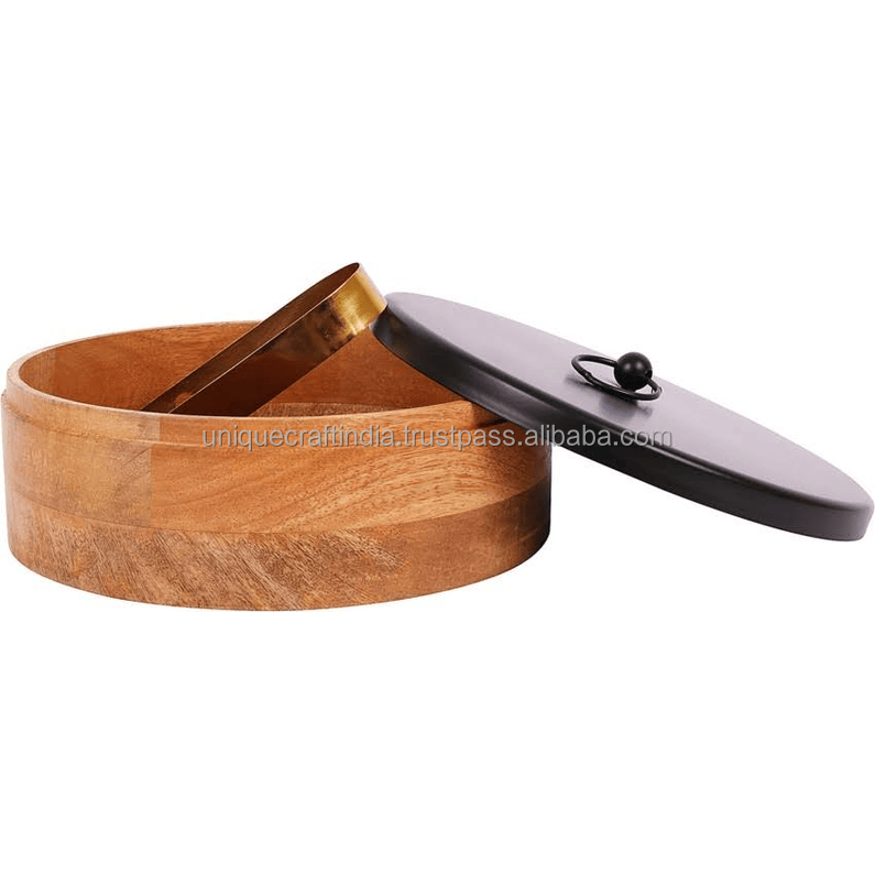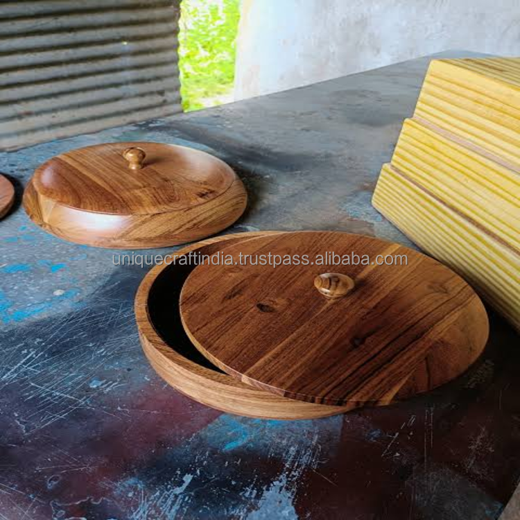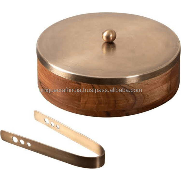 กล่องใส่ชาปาตีไม้มะม่วงทำมือ พร้อมฝาโลหะและที่คีบ | ที่เก็บโรตีพรีเมียม | กล่องเก็บขนมปังตกแต่ง