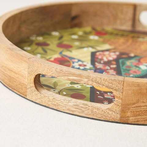ถาดเสิร์ฟไม้มะม่วงเคลือบลายพิมพ์ งานแฮนด์เมด คุณภาพดีที่สุด ลายดอกไม้ ปลอดภัยสำหรับเครื่องล้างจาน ของขวัญสุดพิเศษ ใช้ได้ทั้งบนโต๊ะและวางบนโต๊ะทำงาน