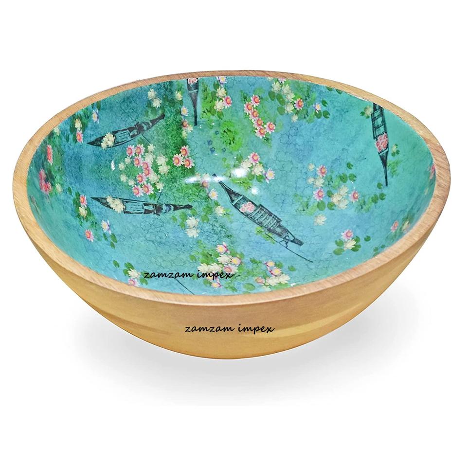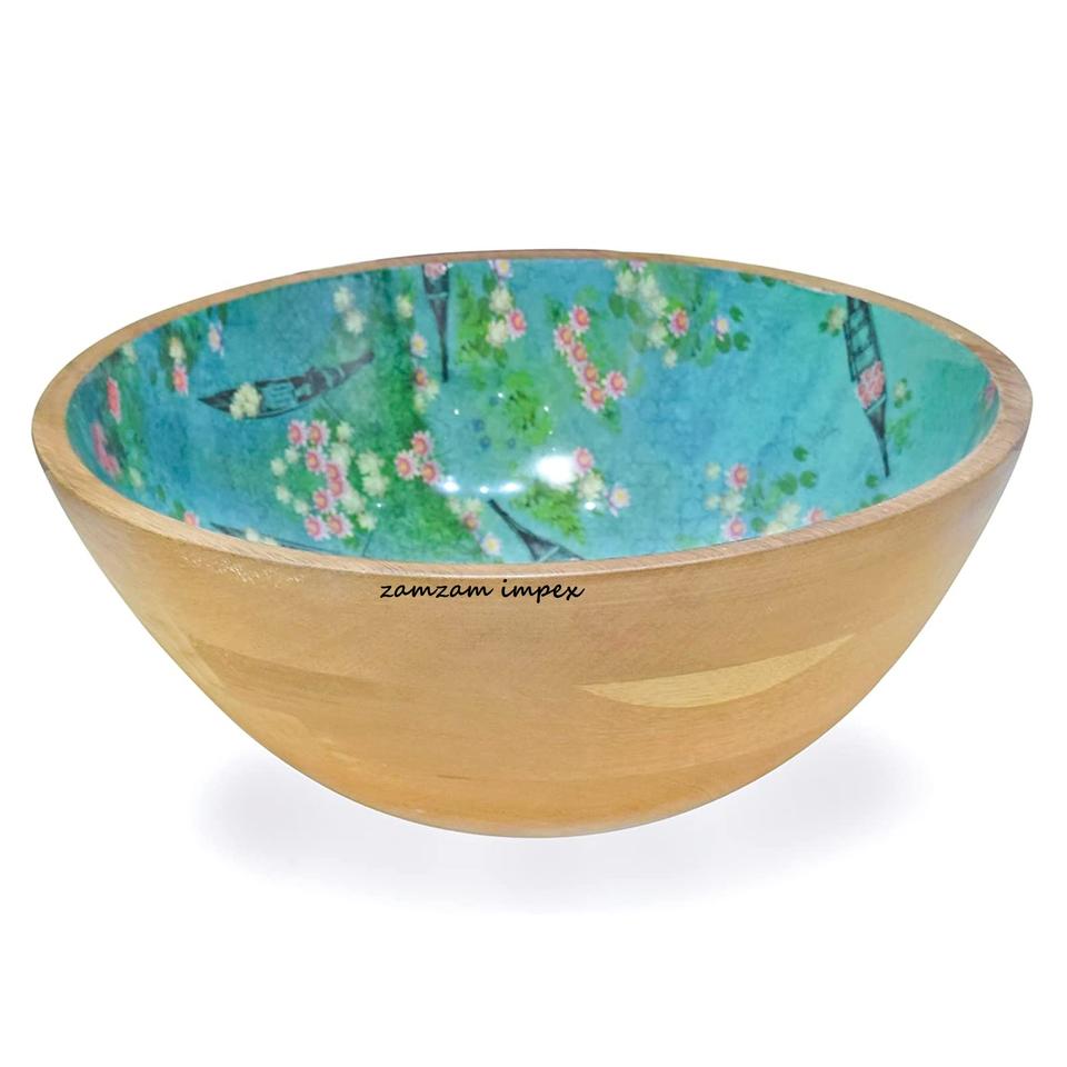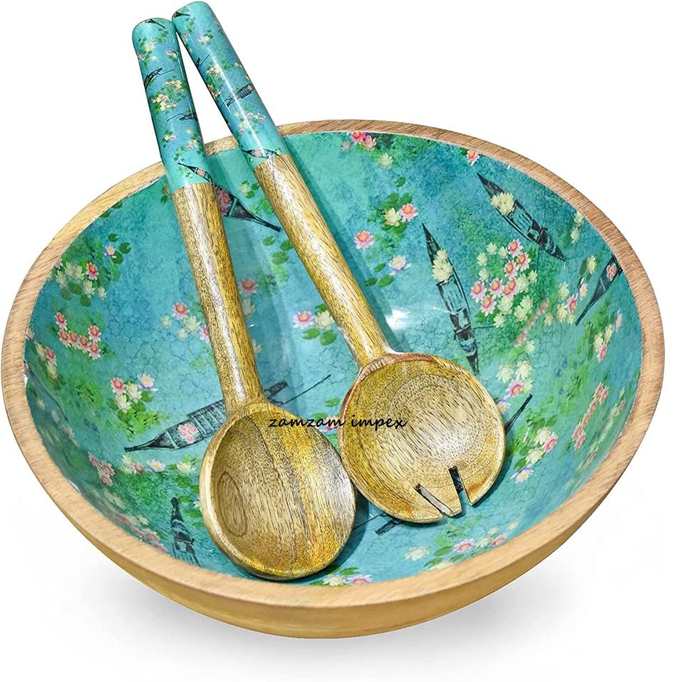 ชามสลัดไม้มะม่วงทำมือพิมพ์ลาย Lake Reverie พร้อมที่ตักสลัดเข้าชุด ตกแต่งสวยงาม เป็นมิตรกับสิ่งแวดล้อม ใช้กับเครื่องล้างจานได้