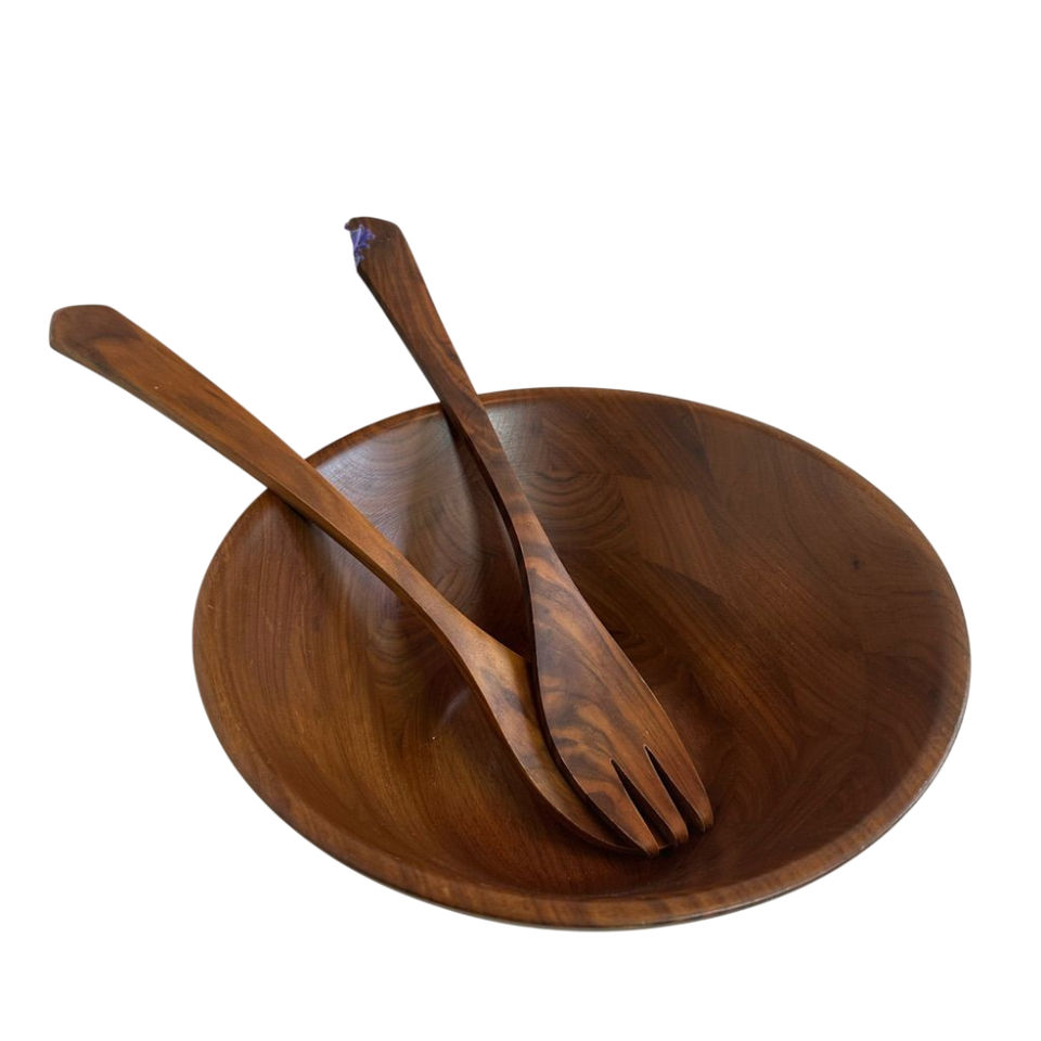ชุดชามสลัดไม้มะม่วงทำมือ พร้อมอุปกรณ์เสิร์ฟ เป็นมิตรกับสิ่งแวดล้อม ชามไม้ขนาดใหญ่พร้อมลายพิมพ์ที่เป็นเอกลักษณ์
