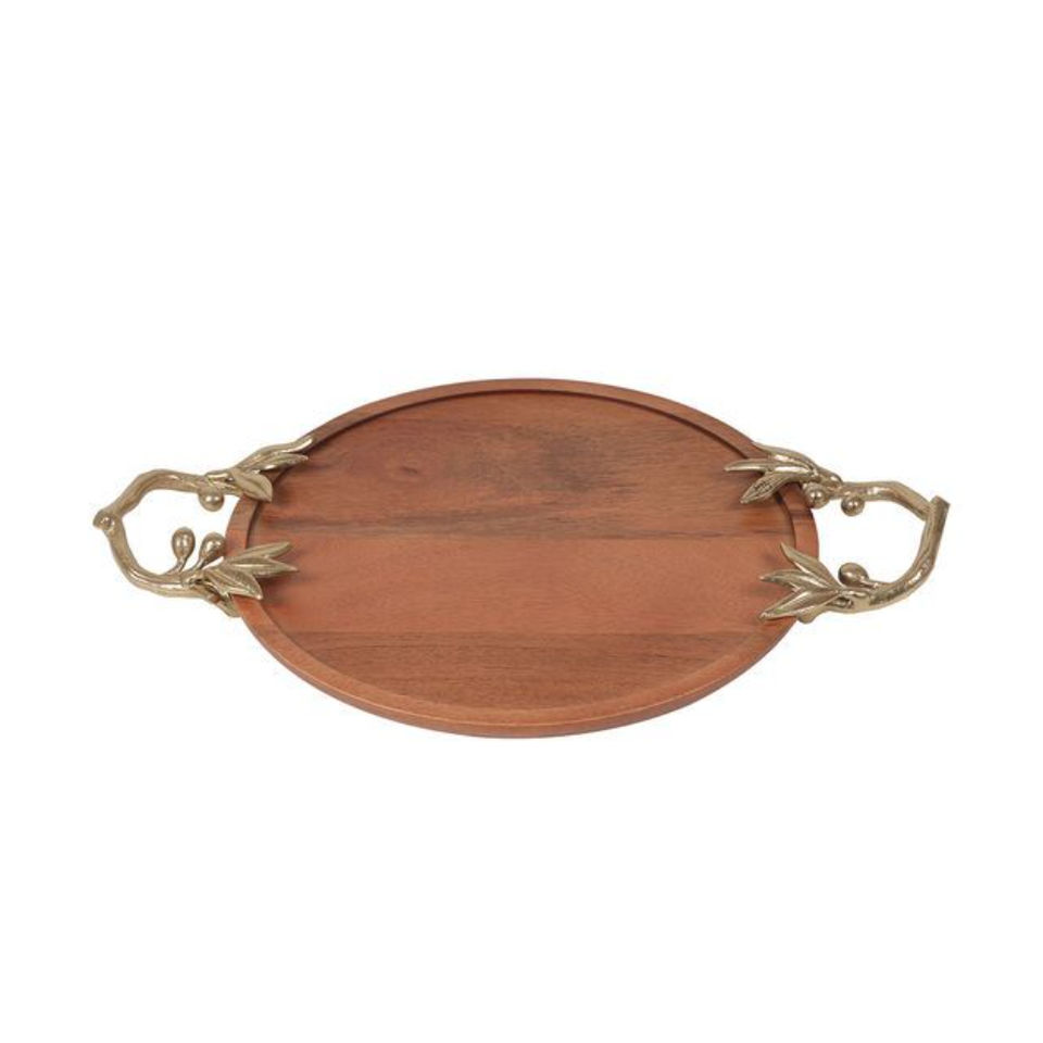ถาดเสิร์ฟไม้มะม่วงทำด้วยมือพร้อมที่จับโลหะสีทองถาดรูปไข่สำหรับของขวัญและของตกแต่งบ้าน