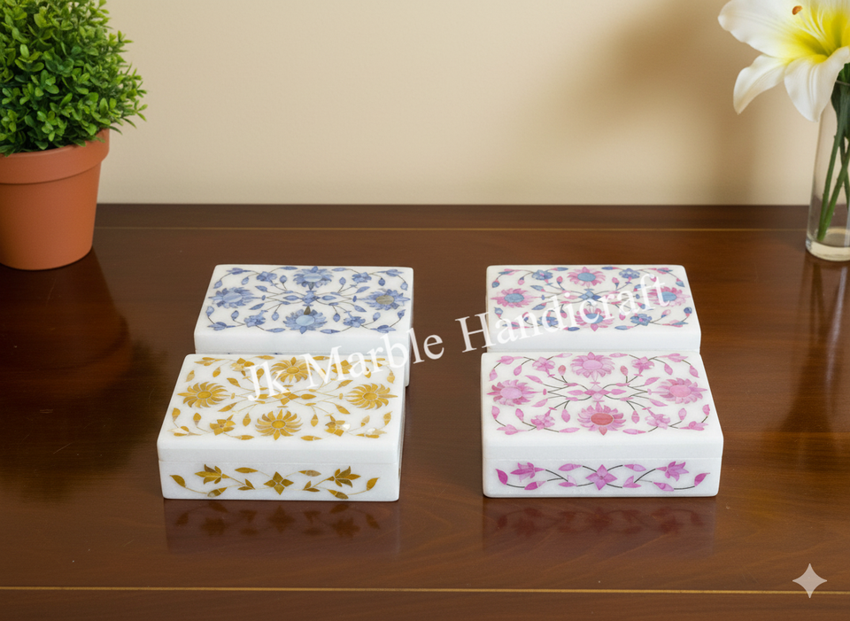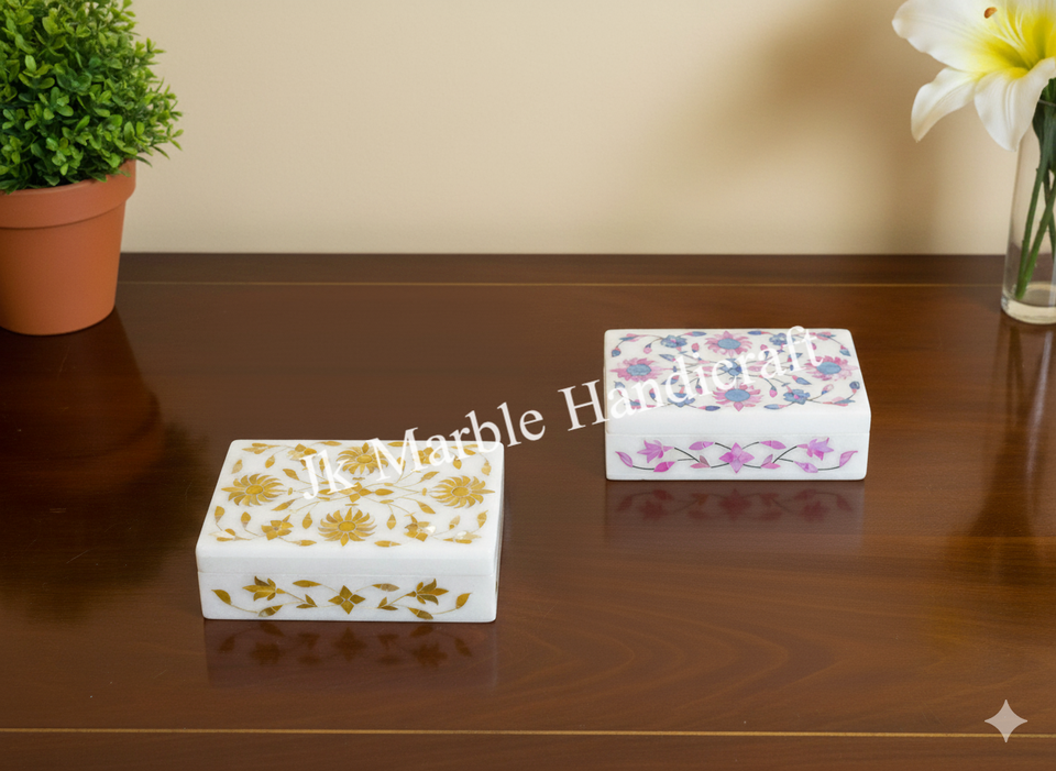 กล่องเครื่องประดับฝังลายดอกไม้ทำด้วยมือลายหินอ่อนผสมแม่มุกขนาดต่างๆออกแบบมาสำหรับที่เก็บสร้อยคอพิมพ์อินเดีย