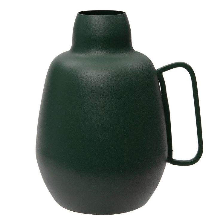 แจกันเหล็กสีเขียวด้านแบบทำมือ แจกันดอกไม้ทรงทันสมัยพร้อมหูจับ แจกันโลหะตกแต่งบ้านสไตล์มินิมอล แจกันโลหะทำมือ