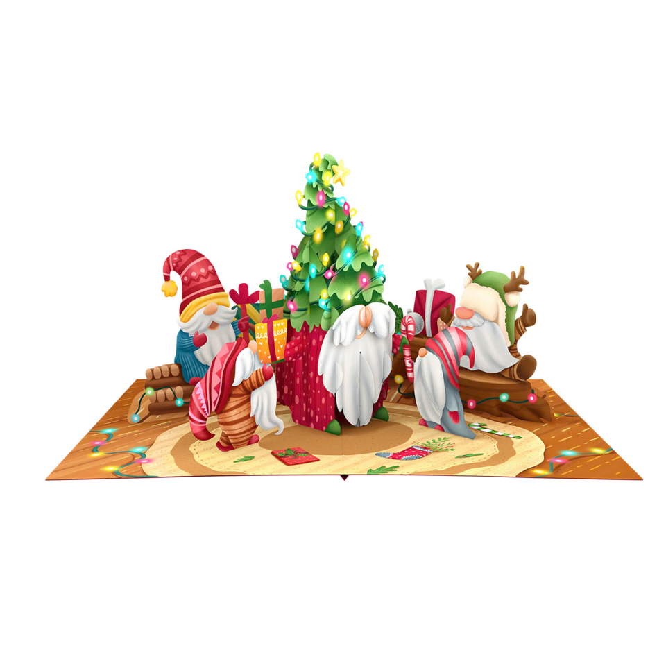 Theme:Christmas, Gnomes Carrying Gifts Around a Pine Tree