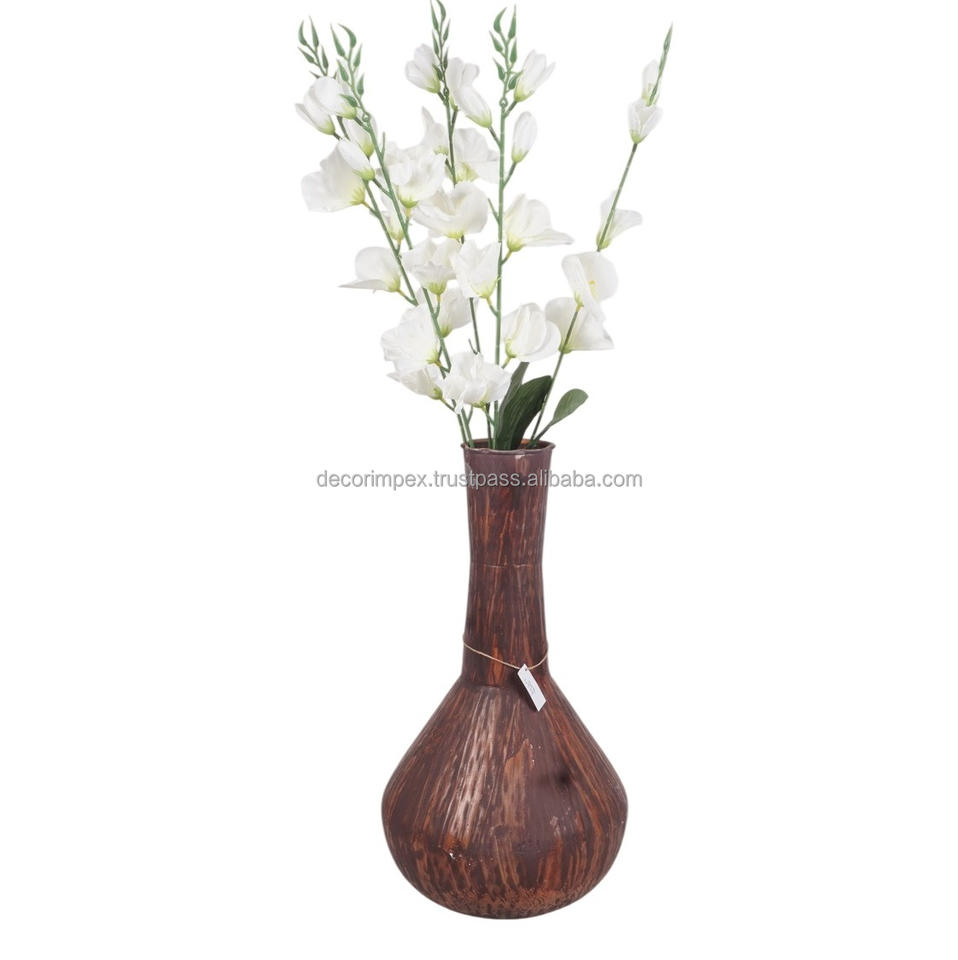 แจกันโลหะสีน้ำตาลทำมือ ดอกไม้ประดิษฐ์สีขาว ดีไซน์ทันสมัย เป็นมิตรกับสิ่งแวดล้อม แจกันตั้งโต๊ะสำหรับตกแต่งบ้าน สำนักงาน งานแต่งงาน