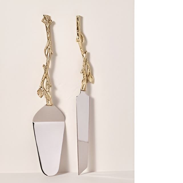 ที่เสิร์ฟเค้กโลหะทำมือมีดเค้กงานออกแบบทำด้วยมือมีดตัดเค้กโลหะ