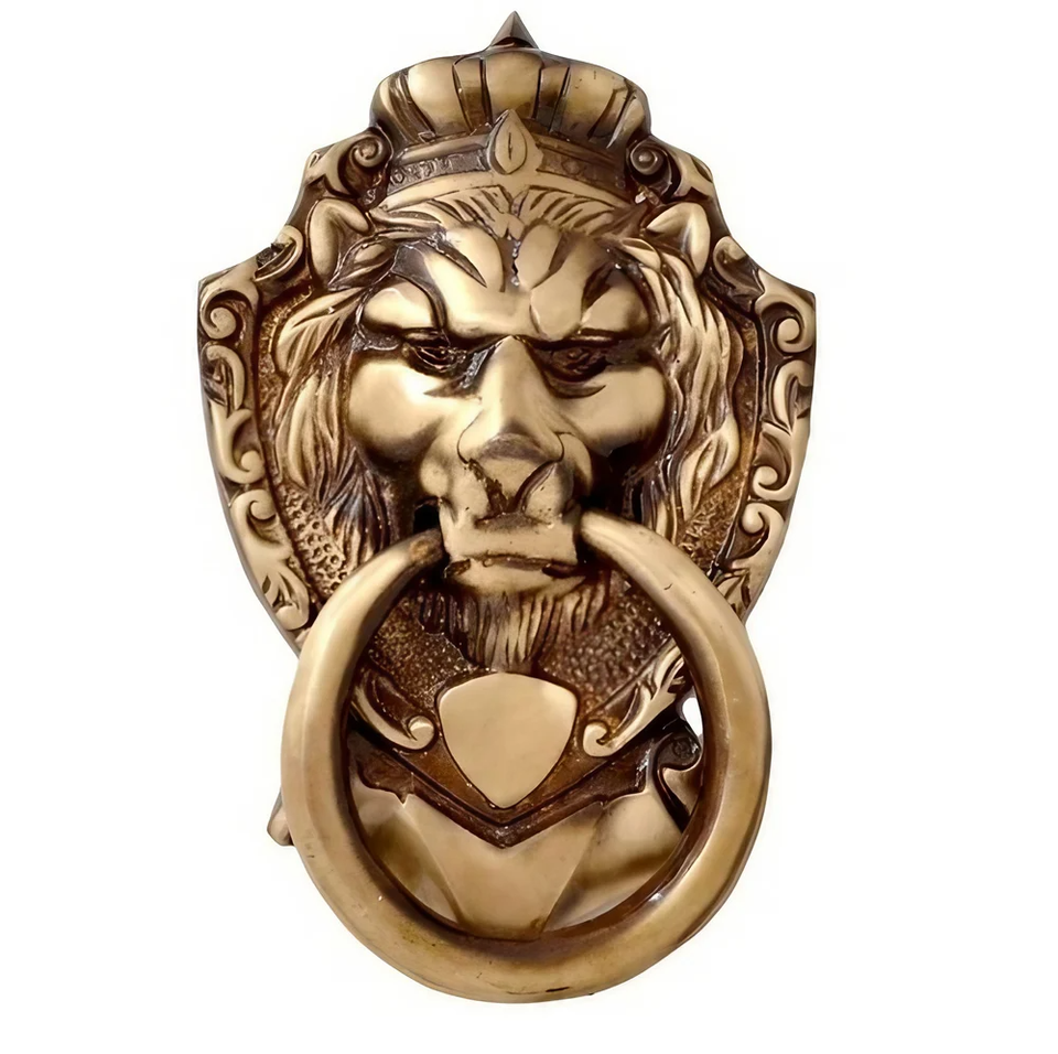 ที่เคาะประตูโลหะทำด้วยมือลูกบิดประตูหน้าสิงโตประตูทางเข้าประตูฮาร์ดแวร์สำหรับภายนอกบ้านประตูหลักการออกแบบตกแต่งแบบชนบท