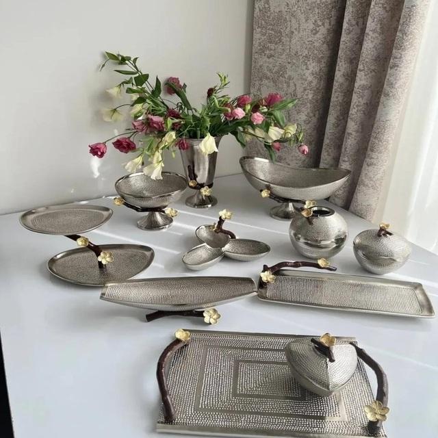 ถาดเสิร์ฟผลไม้โลหะขัดเงา งานแฮนด์เมด ได้รับการรับรองมาตรฐาน CE ออกแบบหรูหรา รับทำโลโก้ตามสั่ง สำหรับโรงแรม ร้านอาหาร โต๊ะโชว์อาหาร