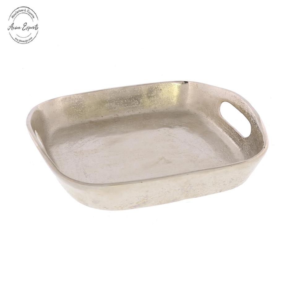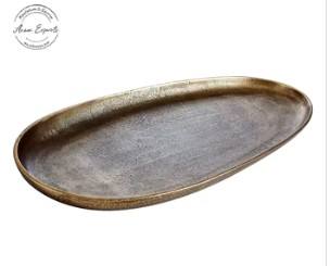 ถาดเสิร์ฟโลหะทำมือพร้อมหูจับด้านข้างสำหรับการจัดวางบนโต๊ะอย่างมีสไตล์และการตกแต่งบ้านและห้องครัวอย่างหรูหรา